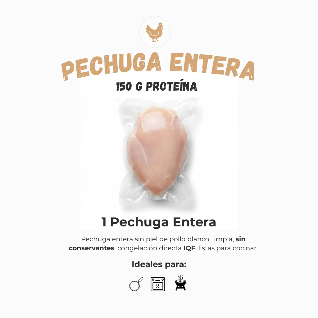 Cada pechuga es seleccionada y empacada bajo estrictos controles de cadena de frío, garantizando inocuidad, frescura y una calidad superior.